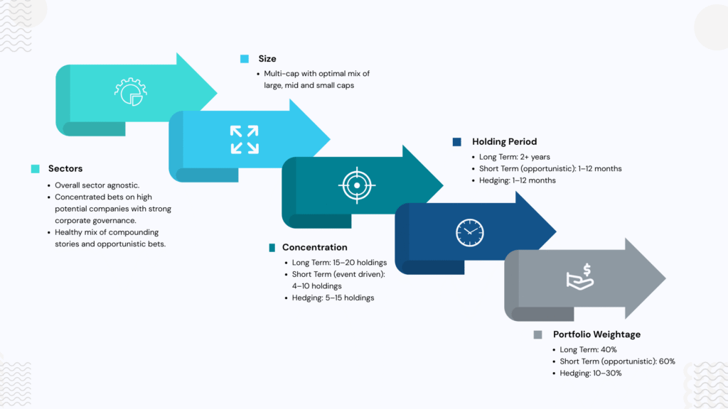 A unique mix of fundamental long equities. Short-term plays (event based / corporate action / hedging etc.)